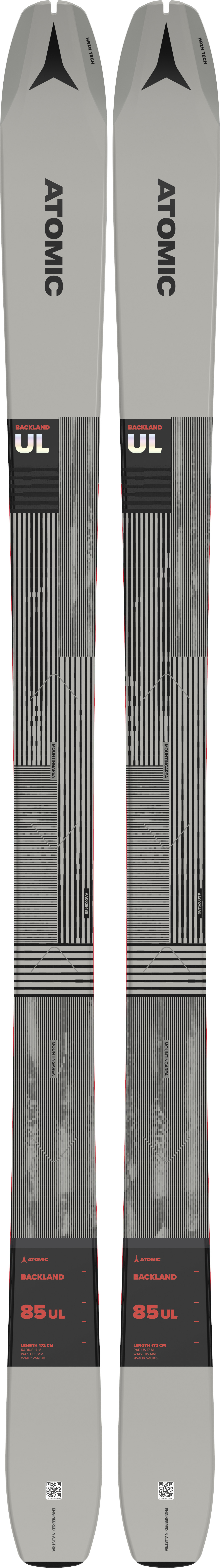 Atomic Backland 85 UL je špičková, extrémně lehká vytrvalostní turistická lyže – jedna z nejlehčích lyží značky Atomic. S Atomic Backland 85 si užijete dobrodružství v jakýchkoli sněhových podmínkách. Konstrukce Ultra Light Woodcore poskytuje extrémně lehký lyžařský výkon a výjimečně efektivní a rychlé stoupání. All Mountain Rocker zároveň znamená plynulý a stabilní výkon při sjezdu. HRZN Tech ve špičce krásně plave v čerstvém sněhu. A pro závodníky - díky vyříznutému zářezu na špičkách je nasazení pásů super rychlé a snadné.