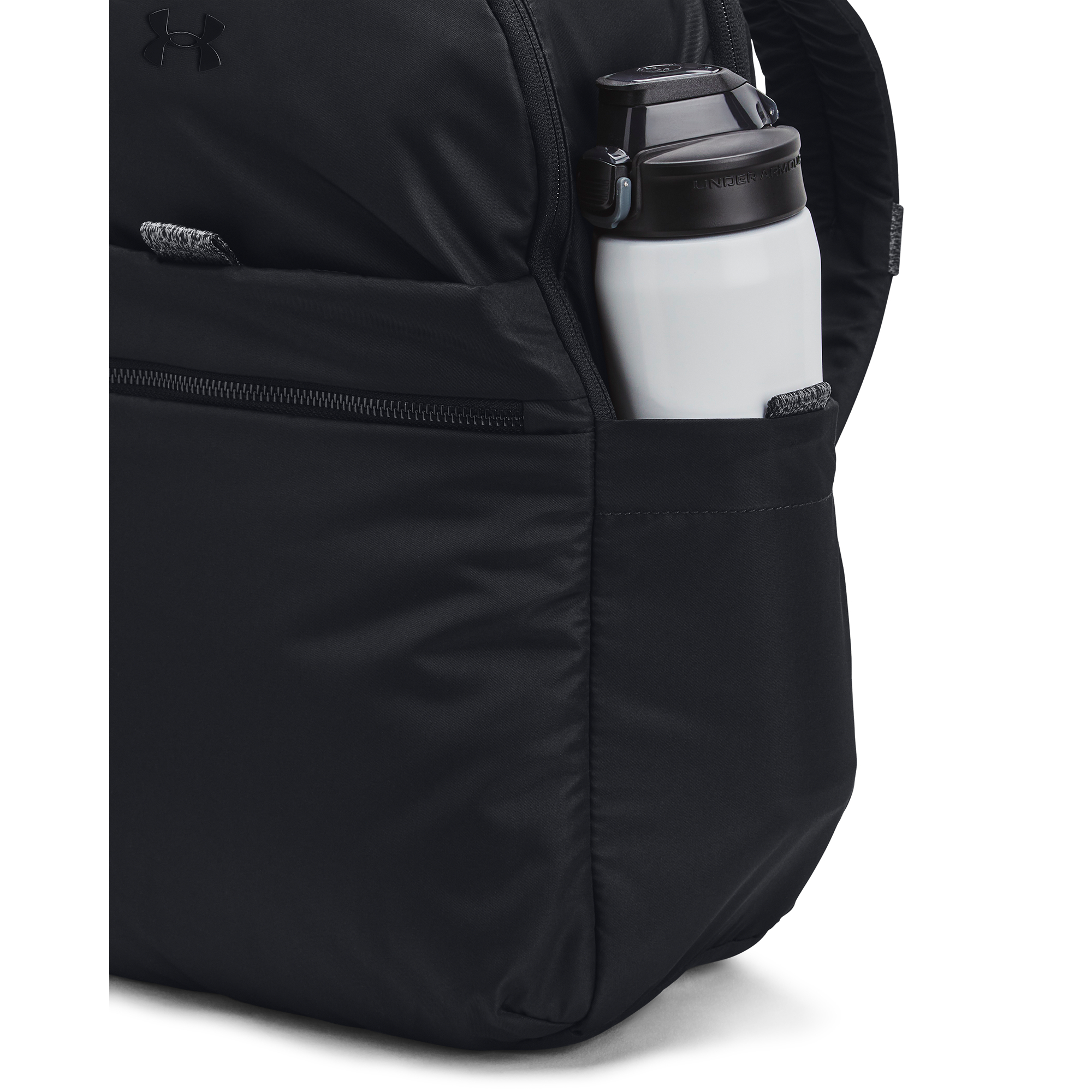 Dámský batoh vyrobený ze syntetické tkaniny, která je na povrchu ochráněná technologií UA Storm díky níž, odpuzuje vodu a chrání tak Vaše věci před vlhkostí. Hlavní kapsa obsahuje pouzdro na notebook o velikosti úhlopříčky do 15 palců a další přihrádky na Vaše cennosti. Nastavitelné, ergonomicky tvarované ramenní popruhy pro větší pohodlí. Upevňovací bud ve tvaru "D", ke kterému můžete připnout cokoli s karabinou pro snadnou přepravu. 2 boční kapsy na lahve s vodou. Používá voděodpudivou úpravu bez fluoru.