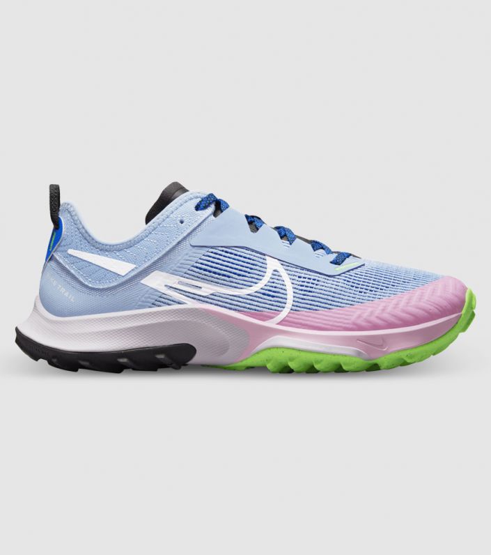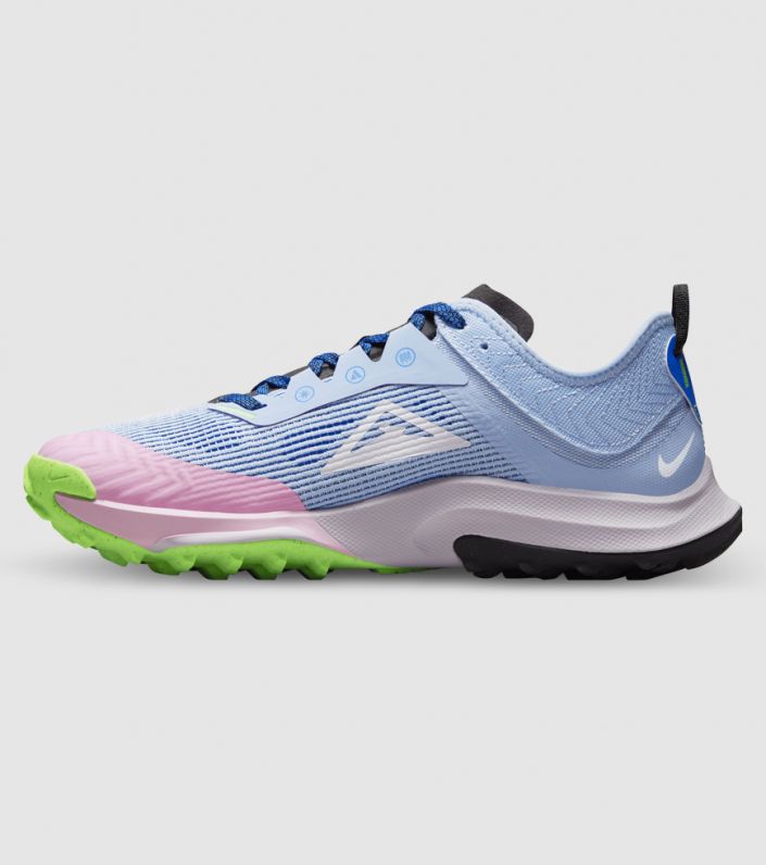 Dámská trailová obuv Nike Air Zoom Terra Kinger 8 je lehká a funkcionalistická. Je to obuv bez ozdůbek, která má jenom to, co potřebujete, a dobře zpevňuje nohu. Navrhli jsme ji tak, aby fixovala nohu a usnadnila tak pohyb po nerovném terénu. Navíc má měkké tlumení a vysokou citlivost, takže Vám do každého kroku vrátí část energie. Obujte si ji a připravte se na běh blátivou stezkou. Lehká prodyšná síťovina na svršku se stará o pohodlí a pevnost. Podšití po celé ploše chrání před vniknutím kamínků a nečistot. Pata je navržená tak, aby se noha zafixovala, byla chráněná a pohybovala se s botou. Výsledkem je lepší pohyblivost po skalnatém terénu. Lamely z vysoce odolné gumy v patní části skvěle zabírají ve všech směrech. Zlepšují trakci při výbězích a sebězích. Lehká a odolná pěna s technologií Nike React citlivě reaguje při každém kroku. Jednotka Zoom Air v přední části mimořádně citlivě tlumí a vrací energii při běhání v terénu. Tvrdý díl v patě chrání chodidlo při běhání v náročném terénu. Povrch špičky se jen tak neodře. Polstrovaný jazyk pomáhá uvolňovat tlak na nárt, když noha při dlouhém běhu oteče.