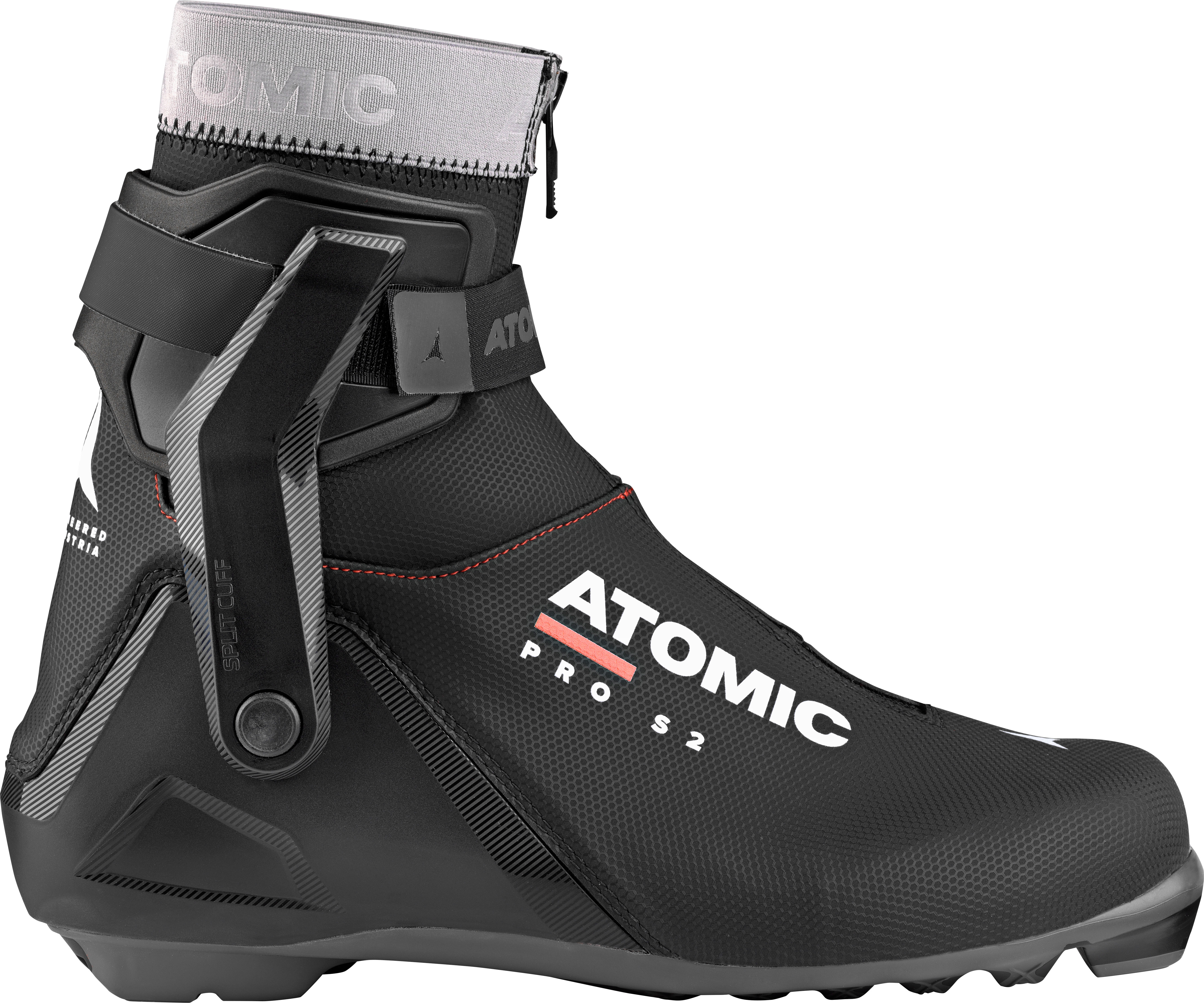 Běžecké boty Atomic Pro S2 jsou jedny z nejlepších běžkařských bot z řady Atomic na bruslení, určené pro běžkaře zaměřené na zvyšování kondice. Dosahuje rovnováhy mezi přesností a pohodlím pro dlouhé hodiny na trati. Systém šněrování obepíná nohu a pevně ji drží, zatímco dělený komín Split Cuff s 360° zapínáním umožňuje přirozený pohyb kotníku, který je přitom stále podepřený. Střih Sport Fit je přiléhavý, ale ne příliš těsný, a systém Live Fit uvnitř boty se přizpůsobí tvaru vaší nohy, aby vám bota mimořádně pohodlně seděla. A stejně jako všechny boty Atomic funguje s každým dvoudrážkovým vázáním, včetně NNN® a Turnamic®.