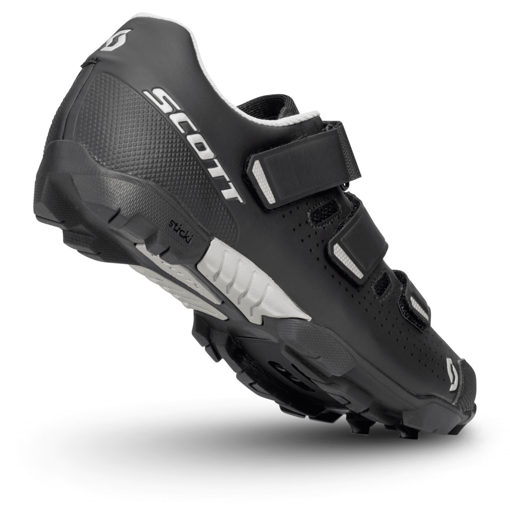 Na modelu cyklistických treter Scott Mtb Comp lze ověřit, že skvěle střižená výkonnostní obuv nemusí být vždy příliš finančně náročná. Nový přizpůsobivý svršek přirozeně obepne chodidlo, botu dotáhnete a doladíte třemi pásky na suchý zip. Svršek je vyroben ze syntetické kůže a 3D síťoviny, jazyk z mikrovlákna a 3D pěny EVA. Kompozitní podešev o indexu tuhosti 6 s větší plochou pro nastavení zímků a pryží Sticki v minimalistické závodní vrstvě nabízí vynikající přilnavost k terénu s kořeny, kameny i k nesoudržnému povrchu.
