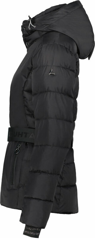 Dámská lyžařská bunda Luhta Suukisvaara v černé barvě se slušivým střihem a elegantním páskem kombinuje styl a funkčnost, takže ji oceníte jak na svahu, tak i při zimních volnočasových aktivitách. Díky vodnímu sloupci 10 000 mm a prodyšnosti 5 000 g/m²/24 h je bunda voděodolná, větruodolná a zároveň prodyšná. Výplň z imitace chmýří poskytuje výbornou tepelnou izolaci při nízké hmotnosti. Bunda je vybavena odnímatelnou a nastavitelnou kapucí, kterou lze doplnit o odnímatelný lem z umělé kožešiny. Vnitřní límec z umělé kožešiny, žebrované manžety, odnímatelný sněhový pás a podšité kapsy na zahřátí rukou zajišťují maximální komfort. Praktické provedení doplňují dvě přední kapsy na zip, kapsa na skipas na rukávu, vnitřní kapsa s portem na sluchátka, poutka na opasek a poutko na sluchátka. Materiál: 100 % polyester.