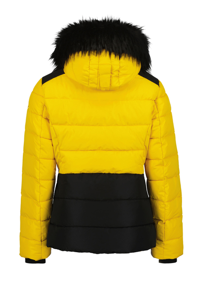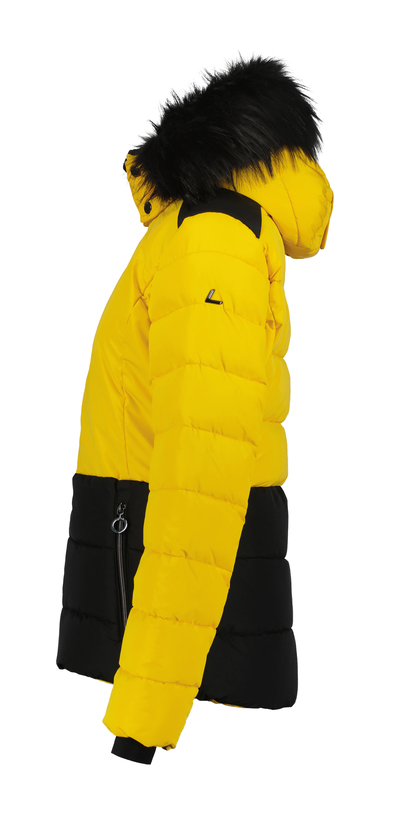 Dámská lyžařská bunda Luhta Tarvantovaara je elegantní prošívaná bunda ve slim fit střihu, která Vás spolehlivě zahřeje i v mrazivých dnech. Díky technologii A.W.S. Extreme poskytuje ochranu proti větru, vodě i chladu a zůstává zároveň prodyšná – s parametry vodní sloupec 10 000 mm a prodyšnost 10 000 g/m²/24 h. Kapuce je doplněna o odnímatelnou umělou kožešinu, která dodává bundě styl i funkčnost. Originální žlutočerná kombinace, kouřové zipy a lesklé jezdce podtrhují moderní sportovní eleganci. Bunda má kompletní lyžařskou výbavu, takže se hodí jak na hory, tak i na běžné nošení. Materiál: 100 % polyester.