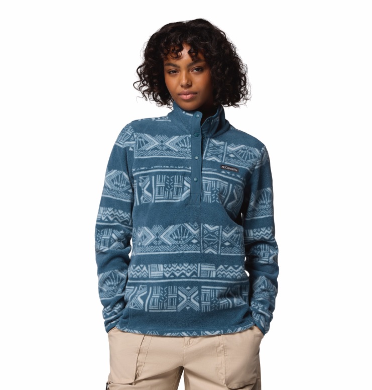Dámská mikina Columbia Benton Springs™ Printed je skvělou volbou pro chladnější dny, kdy hledáte lehkou a hřejivou vrstvu. Je vyrobena z kvalitního MTR filament fleecu o gramáži 250 g, který poskytuje měkký pocit, prodyšnost a snadnou údržbu. Moderní vzhled podtrhuje stylový celoplošný potisk, zatímco zapínání u krku na druky usnadňuje oblékání a regulaci teploty. Pro lepší odolnost a čistý vzhled je mikina doplněna o lemování u manžet a límce. Díky univerzálnímu střihu ji můžete nosit samostatně nebo jako střední vrstvu pod bundu.