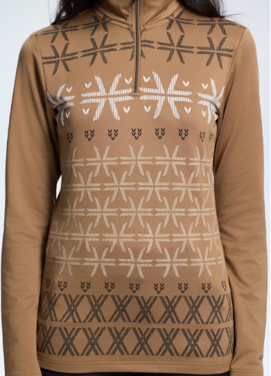 Dámská mikina Luhta Ahjola z kolekce A.W.S. ACTIVE spojuje funkční výkon s vysokým komfortem nošení. Lehký čtyřsměrně strečový materiál Thermostretch účinně odvádí vlhkost a udržuje příjemné teplo i při aktivním pohybu, zatímco měkká vnitřní strana zvyšuje pohodlí. Úzký střih, ozdobný zip, třpytivé detaily a decentní logo dodávají mikině ženský a moderní vzhled, navíc je vyrobena z recyklovaných materiálů s ohledem na udržitelnost.