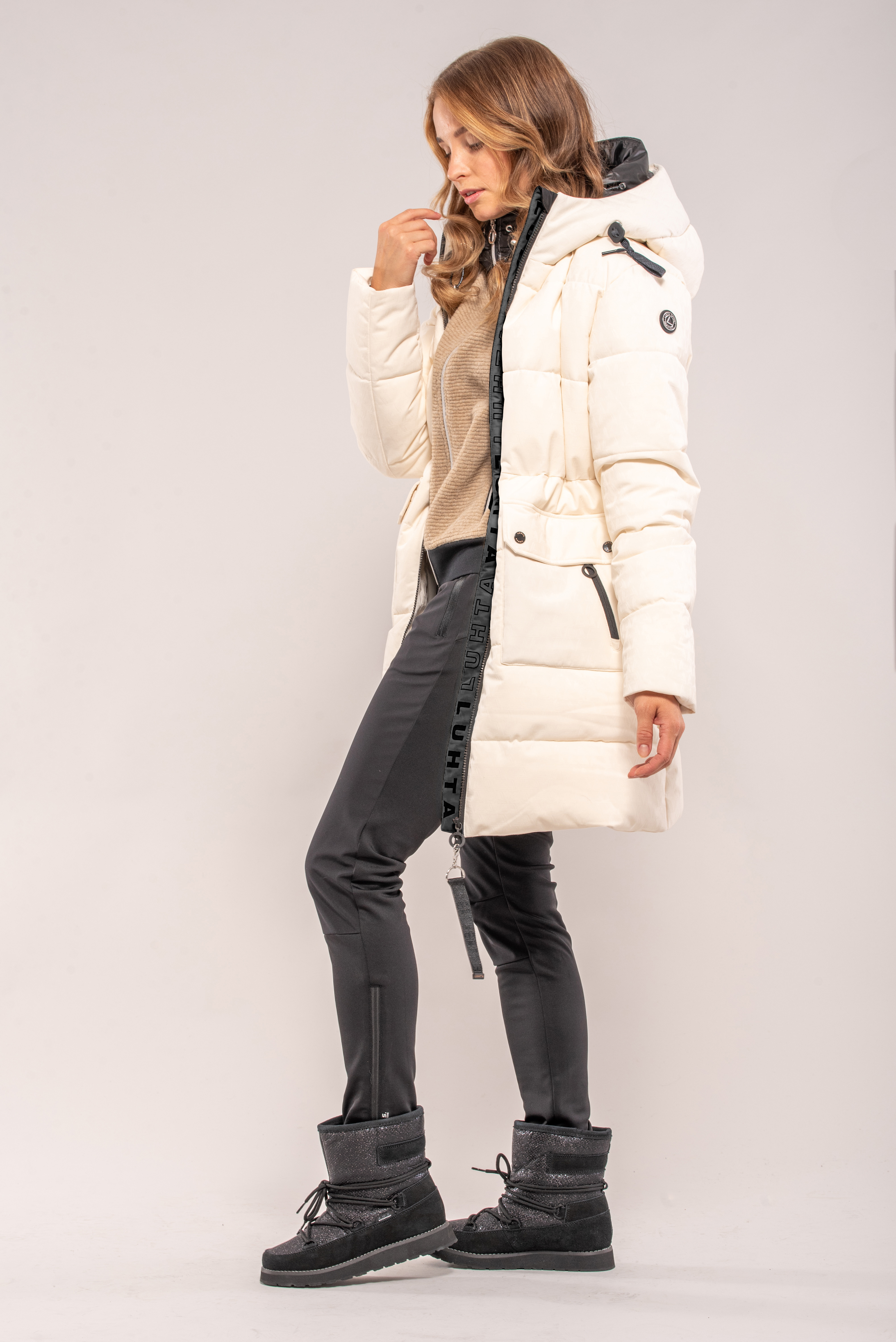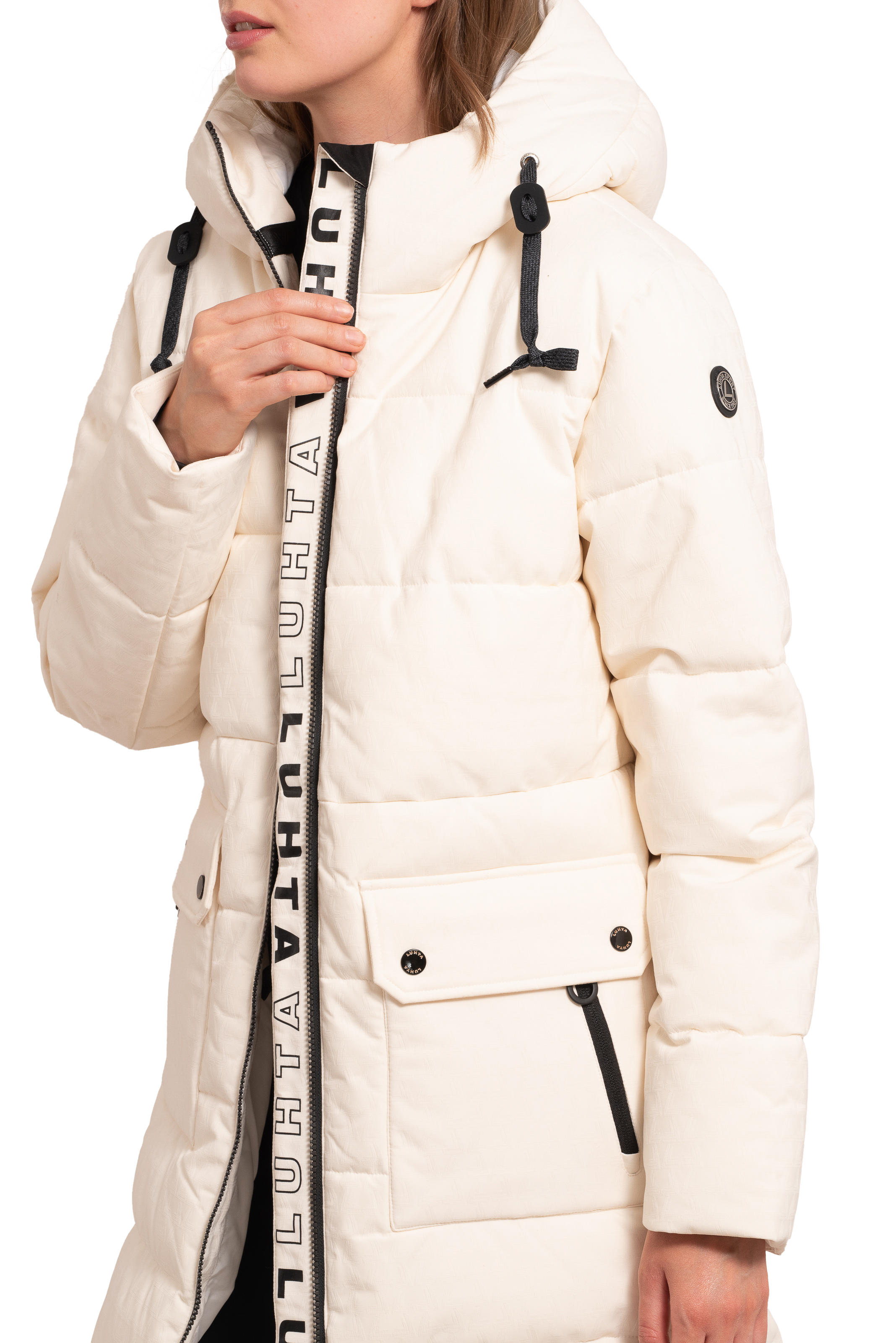 Dámský outdoorový kabát Luhta Espingen disponuje pevnou kapucí se stahovacími šňůrky. K dalšímu vybavení patří elastické vnitřní manžety, dvě přední kapsy na zip, podšité kapsy na zahřátí rukou, vnitřní kapsa na zip. Dvoucestný přední zip a nastavitelný pas jsou samozřejmostí. Eleganci dodává odnímatelná ozdoba a značka s logem. Vodní sloupec 5 000 mm. Prodyšnost 5 000 g\m2\24h. Vodoodpudivá úprava bez PFC. A.W.S. ACTIVE je navržena se zvláštním důrazem na funkčnost a pohodlí, takže je vhodná pro aktivní i běžné nošení. Prošívání je tvořeno směsí prachového peří, která poskytuje účinnou tepelnou izolaci, ale působí lehce. Povrch tkaniny je upraven tak, aby byl vodoodpudivý. Větruodolný materiál vás udrží v teple. Podšívka z polyesteru. Hřejivé prošívání.