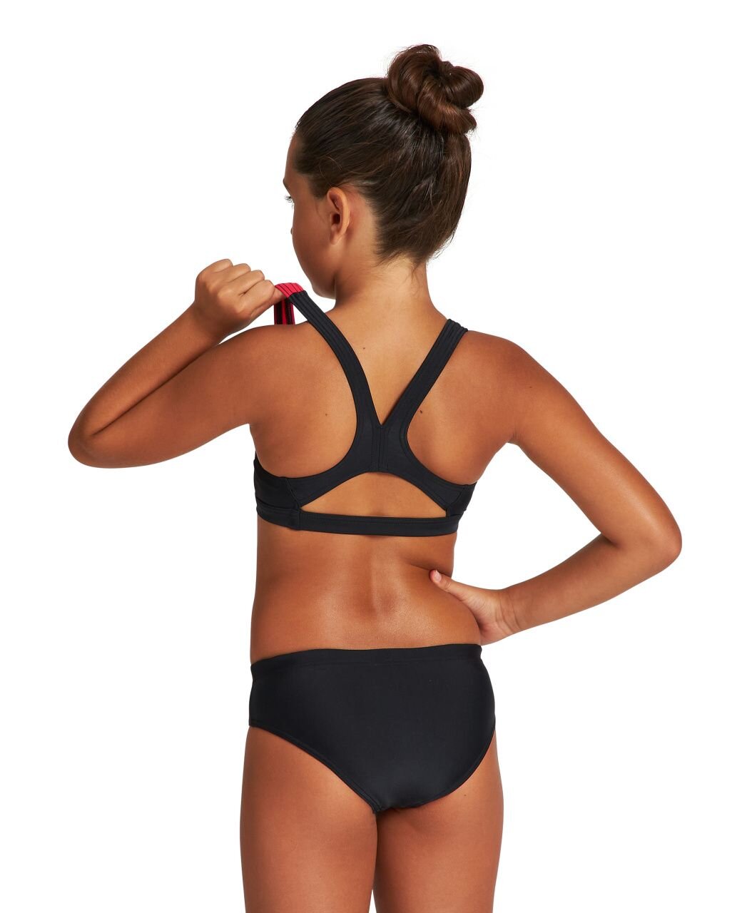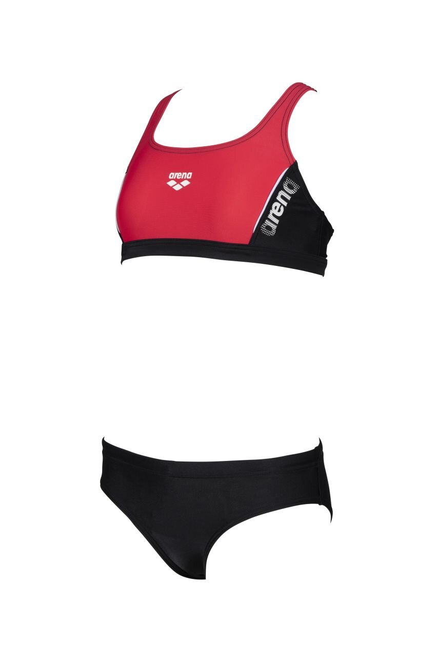 Dívčí sportovní dvoudílné plavky arena G THRICE. Plavky jsou z materiálu MaxFit, který je odolný vůči chlóru po dobu 240 hodin, takže je vhodný zejména pro příležitostné nebo rekreační plavce na tréninky maximálně 2x týdně. Materiál MaxFit je měkký, elastický a díky Lycra® vláknům skvěle padne.