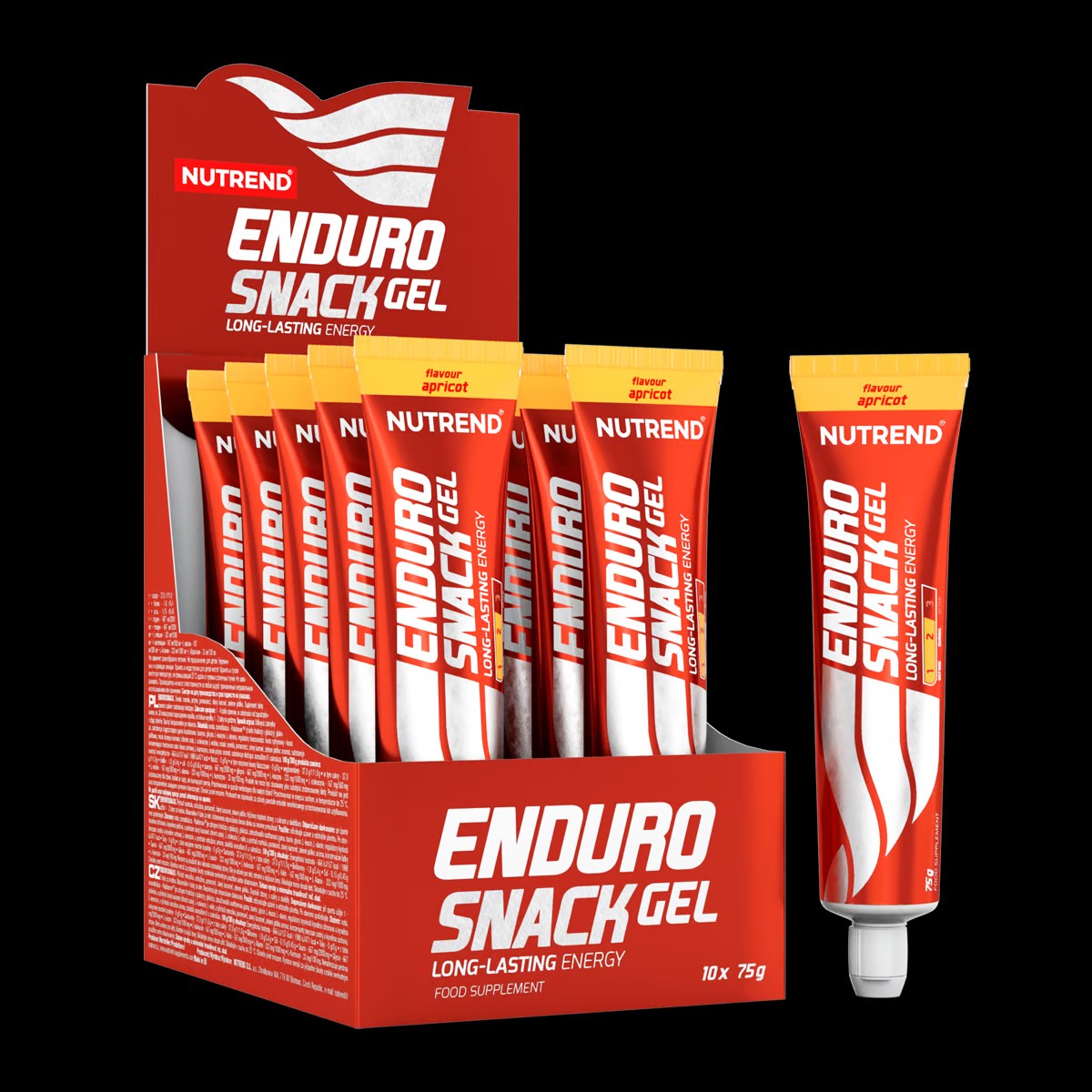 ENDUROSNACK příchuť meruňka: voda, 31,5 % isomaltulóza - PalatinoseTM (je zdrojem fruktózy a glukózy), glukóza, zahušťovadlo xanthanová guma, taurin, glycin, L-leucin, L-alanin, regulátory kyselosti kyselina citrónová a kyselina jablečná, L-isoleucin, L-valin, aroma, konzervanty benzoan sodný a kyselina sorbová, L-karnosin, sladidla acesulfam K a sukralóza.