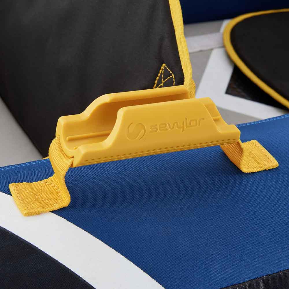 Třímístný rodinný kajak Sevylor MONTREAL 2+1 disponuje technologií DS floor, která zpevňuje podlahu kajaku. Do bočních madel lze zasunout pádla, když zrovna nepádlujete. Součástí balení je vodotěsný vak o objemu 200 l vhodný pro transport mokré lodi autem či na uschování vašich věcí v průběhu plavby. Nafukování pomocí 2x Bostonského ventilu a jednoho vysokotlakého ventilu. Pěnová sedadla zaručují pohodlí i při dlouhých plavbách. Dno vyztuženo technologií Sevy-Strong Tarpaulin, která zajišťuje větší odolnost proti rozbití. Kapacita 2 - 3 dospělí. Počet nafukovacích komor: 3. Šířka: 87 cm. Délka: 383 cm. Hmotnost: 16.8 kg. Nosnost: 210 kg