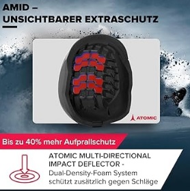 Technologie AMID (Atomic Multi‑directional Impact Deflector) je pokročilý systém ochrany používaný u přileb značky Atomic, založený na duální pěnové vložce s různou hustotou, která dokáže rozložit a absorbovat energii nárazů z různých úhlů a směrů. Pěnový systém se při nárazu částečně pohybuje a deformuje tak, aby snížil přenos sil do hlavy lyžaře a minimalizoval riziko úrazu. Ve srovnání s běžnými bezpečnostními normami poskytuje AMID až o ~40 % vyšší ochranu proti nárazům, protože dokáže lépe pohlcovat energii jak při přímých, tak šikmých nárazech, čímž zvyšuje bezpečnost uživatele při jízdě na svahu nebo v náročnějším terénu.