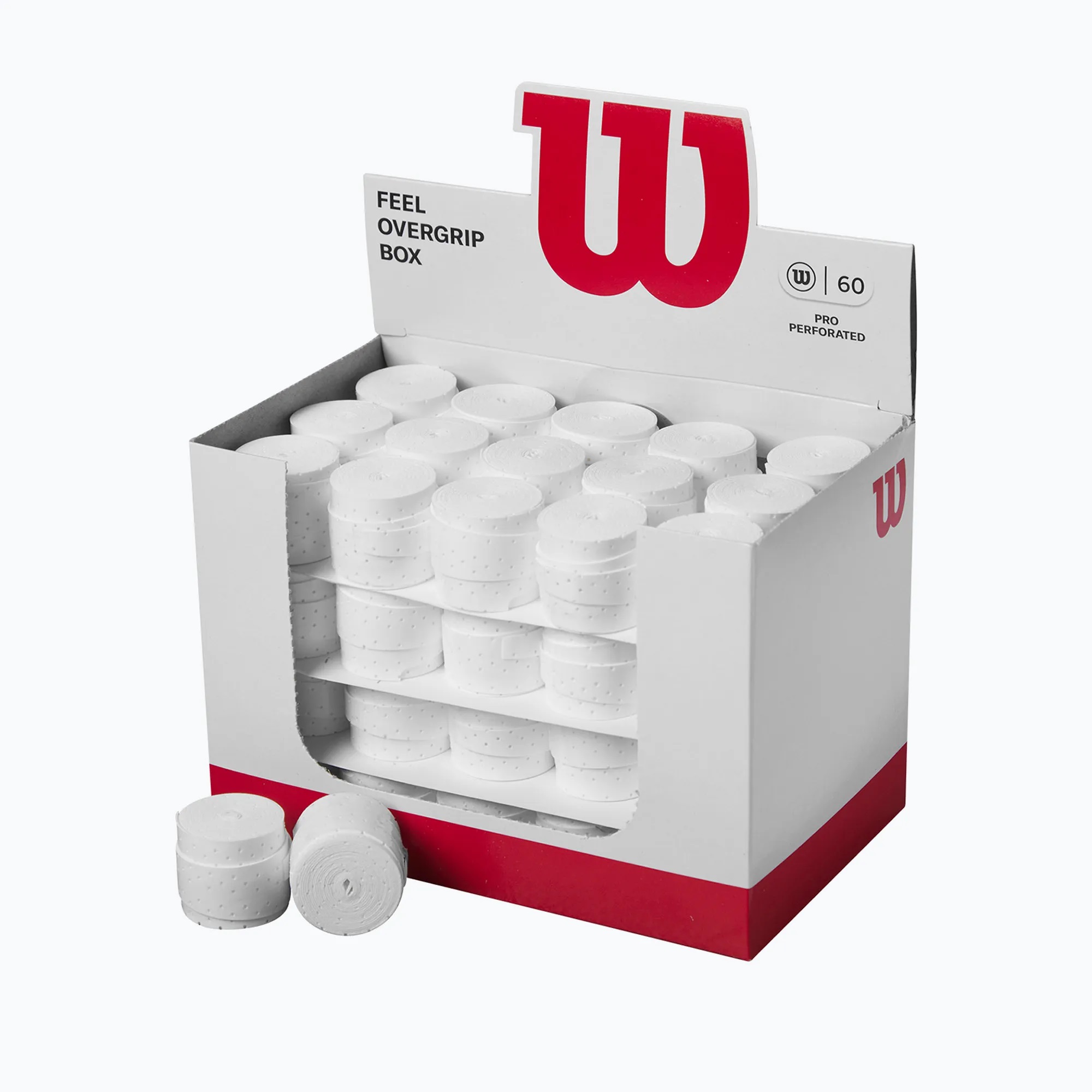 Vrchní omotávka Wilson Pro Overgrip Perforated velmi příjemná, tenká, perforovaná omotávka s výbornou savostí. Je mírně lepkavá ( ne tolik, jak klasický overgrip). Délka 1200 mm, šířka: 25 mm, tloušťka: 0,6 mm