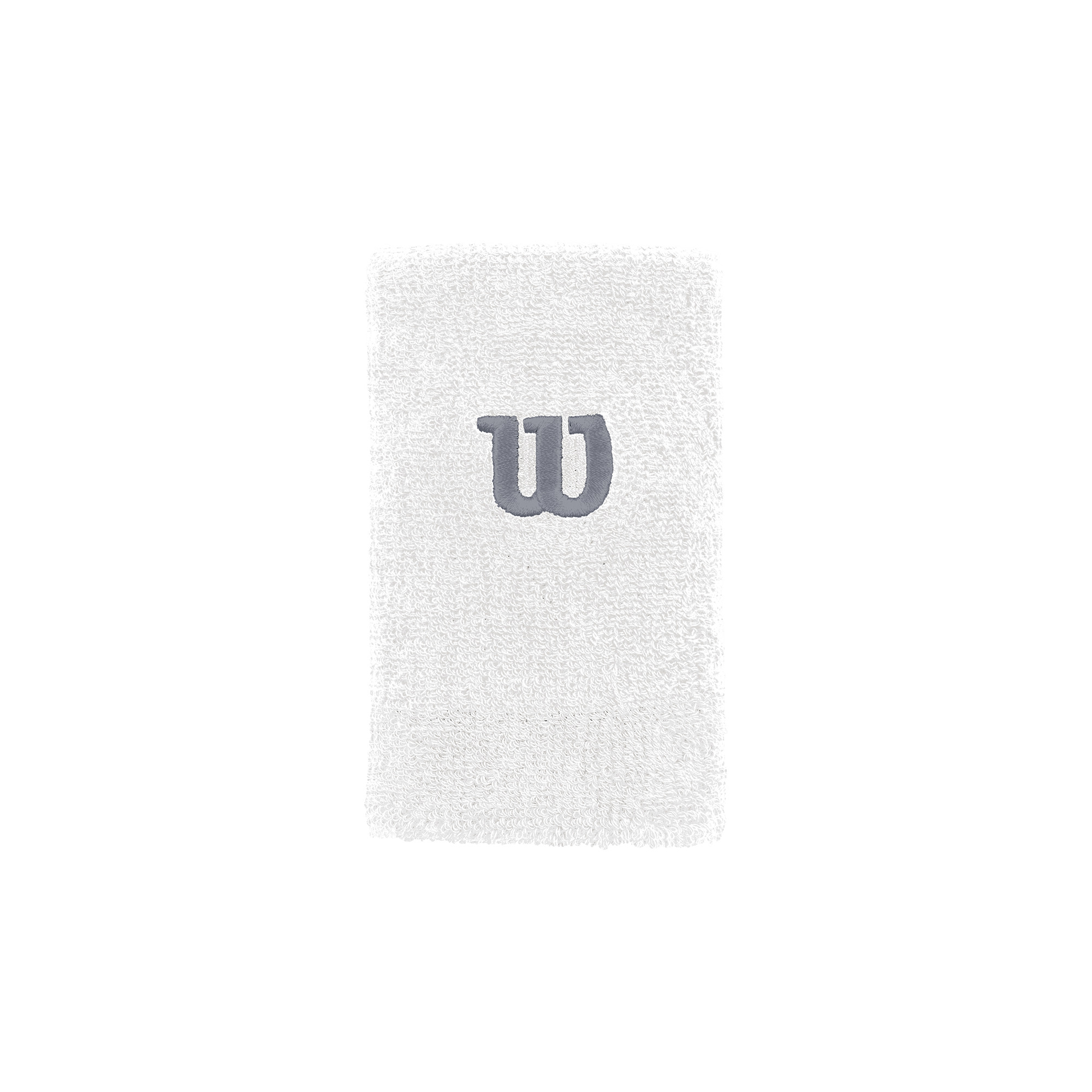 Extra široké potítka s vyšitým nápisem Wilson pro maximální absorpci potu a příjemný pocit při nošení.