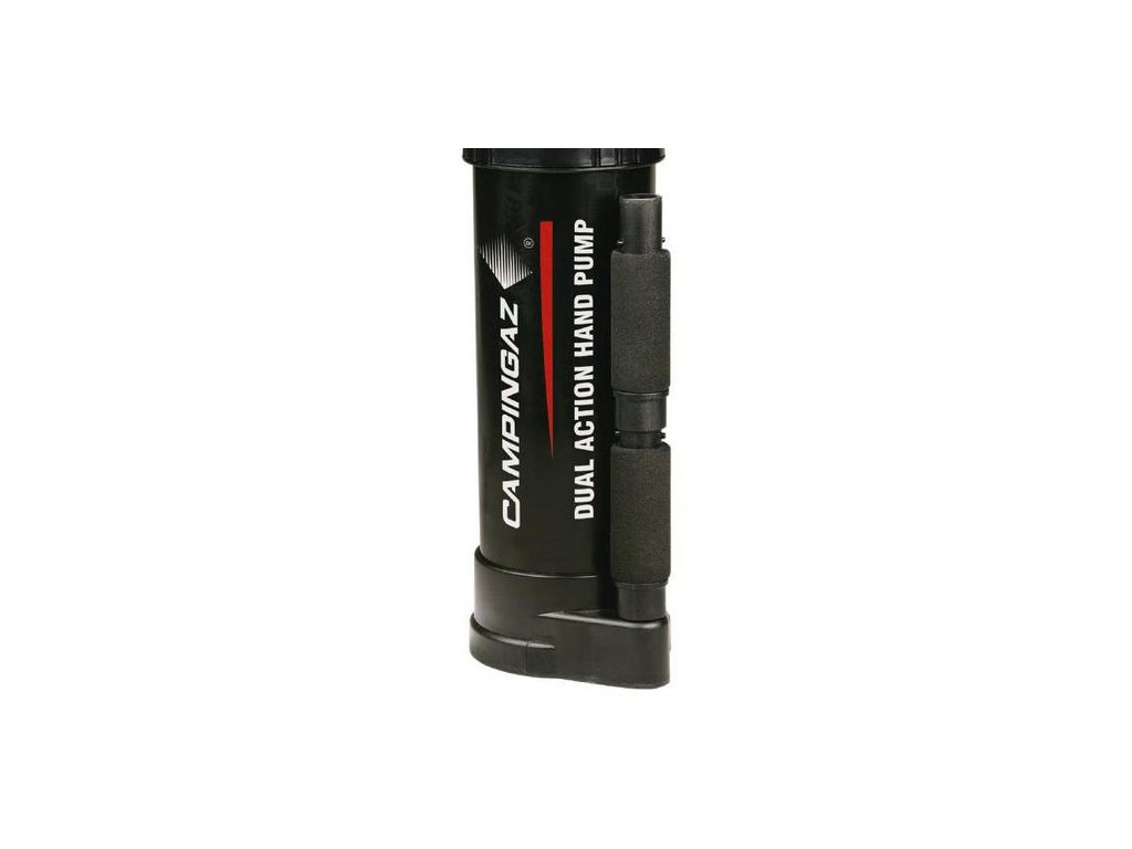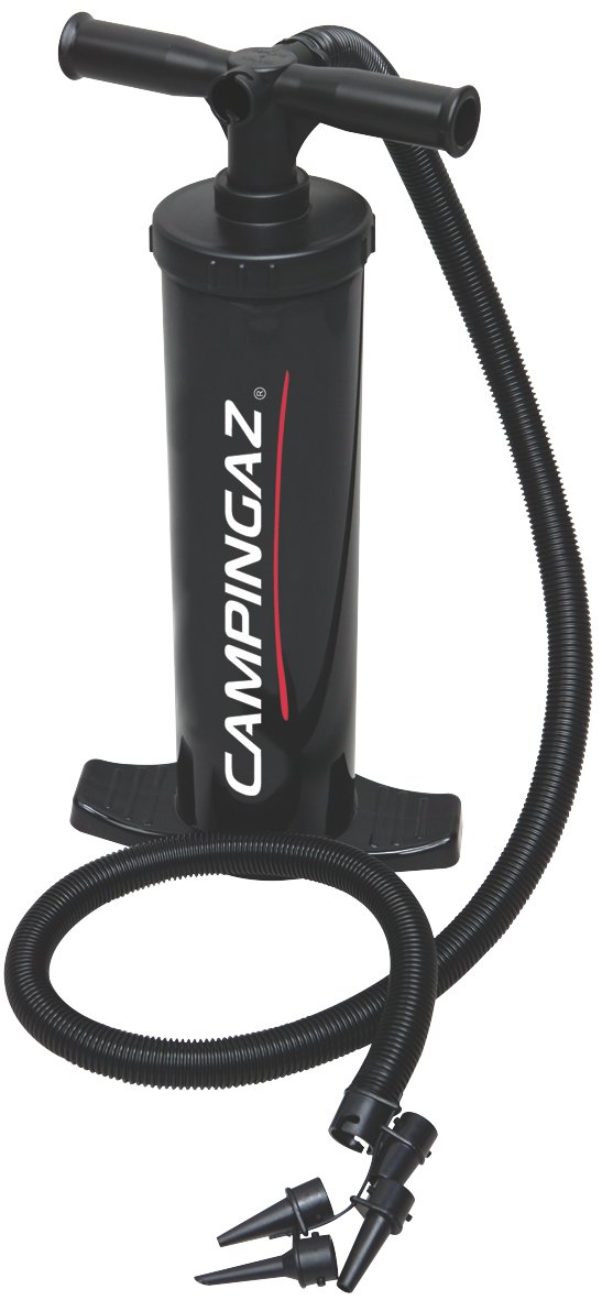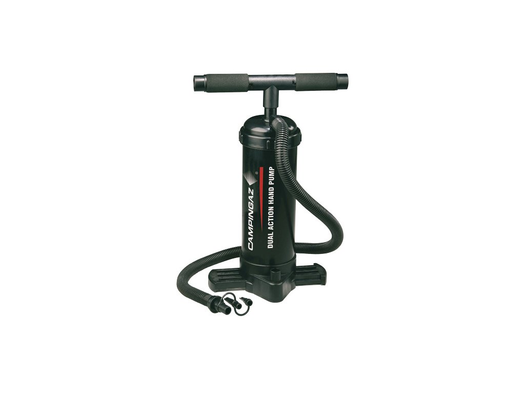 Ruční pumpa Campingaz pro nafukování a vyfukování. Součástí výrobku jsou 3 různé adaptéry (trysky) pro různé ventily včetně Double Lock a Boston. Přenosný obal součástí výrobku.