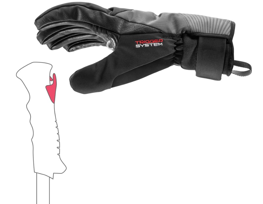 Systém Trigger S zajišťuje maximální bezpečnost a díky širokému provedení poutek obepínajících rukavice perfektní přenos síly. Jedná se o jednoduché vázání mezi madlem hole a rukavicí pomocí poutka, do kterého hůl jednoduše nacvaknete a pomocí tlačítka vycvaknete. Nebezpečí úrazu se minimalizuje díky tomu, že se poutko samo odepne směrem nahoru při jakémkoliv větším tahu, například při pádu.