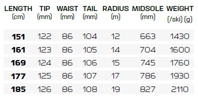 Celodřevěná konstrukce jádra z topolového dřeva. Maximalizuje živost, stabilitu a kontakt lyže se sněhem