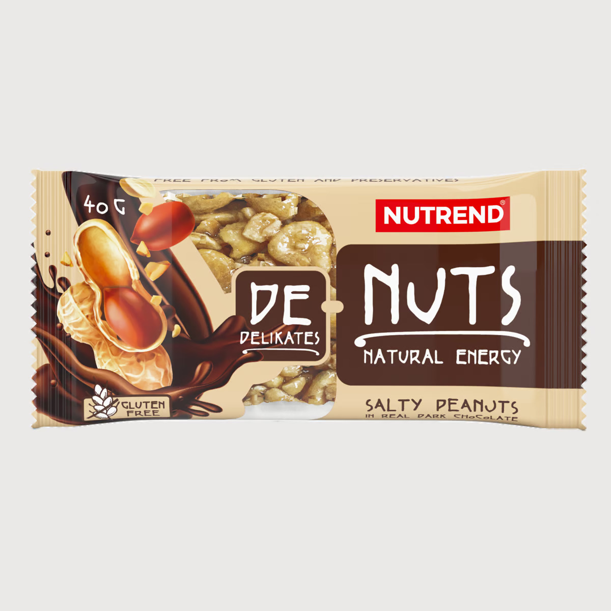 Arašídy 65 %, hořká čokoláda 12,5 % (kakaová hmota, cukr, kakaové máslo, kakao, emulgátory sójový lecitin a polyglycerolpolyricinoleát, vanilkový extrakt), glukózový sirup, fruktóza, med 3,5 %, chlorid sodný, emulgátor řepkový lecitin. Může obsahovat stopy ořechů a sezamu.